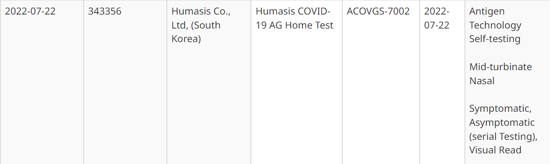 여기서 검색하면 상당수 한국에서 판매중인 자가검사키트가 검색된다